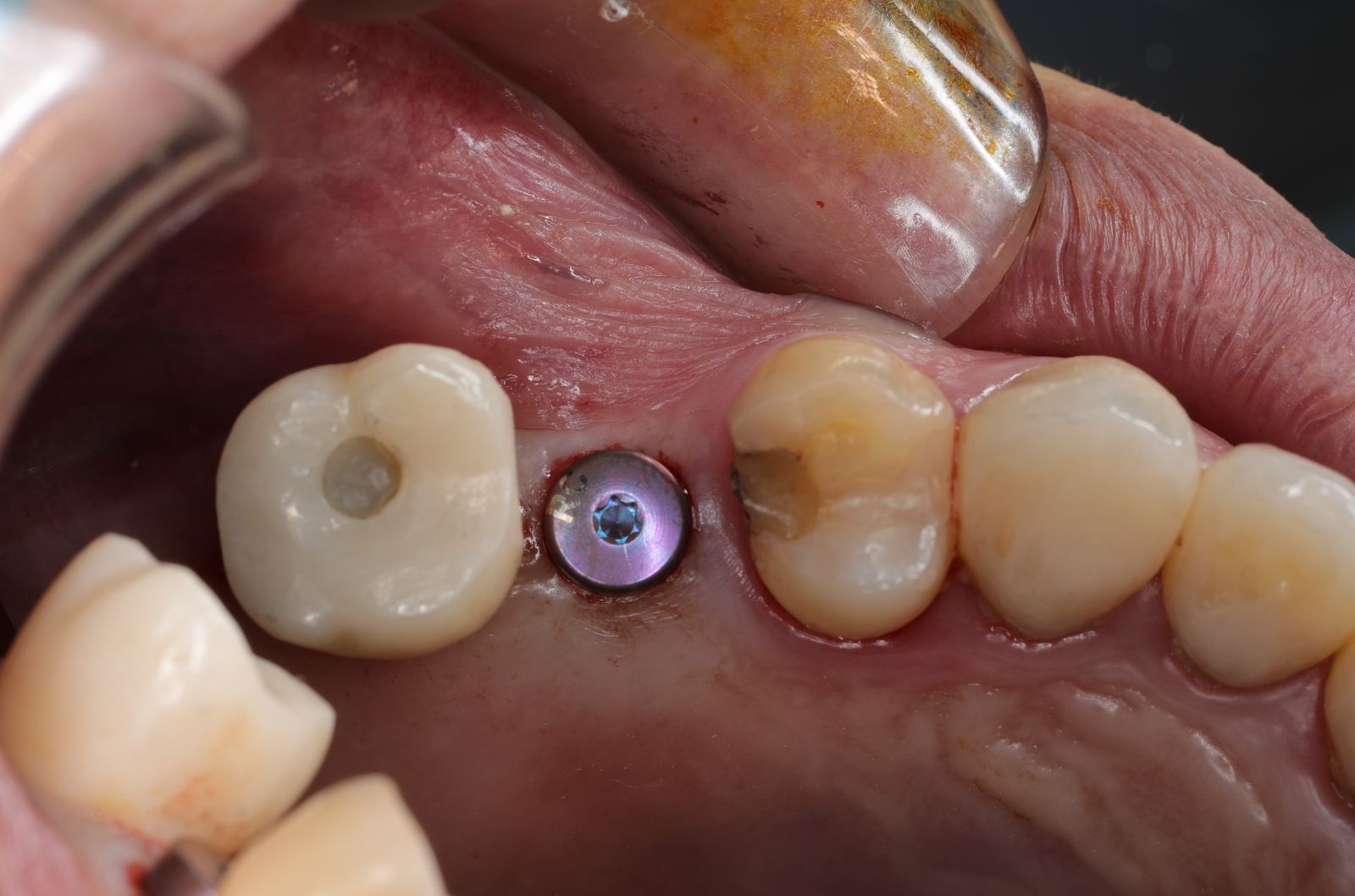 - 植入植體後不用劃開傷口無須縫合,鎖上癒合帽等待骨整合完成,過程輕鬆舒適。