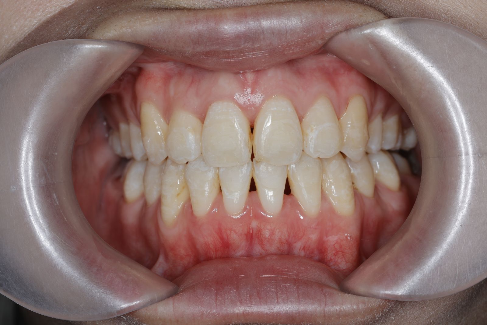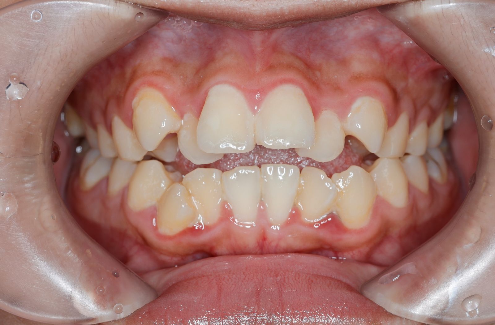 這位患者矯正的訴求是因為牙弓空間不夠,造門牙外擠後凸出,上下咬合關係不正確。