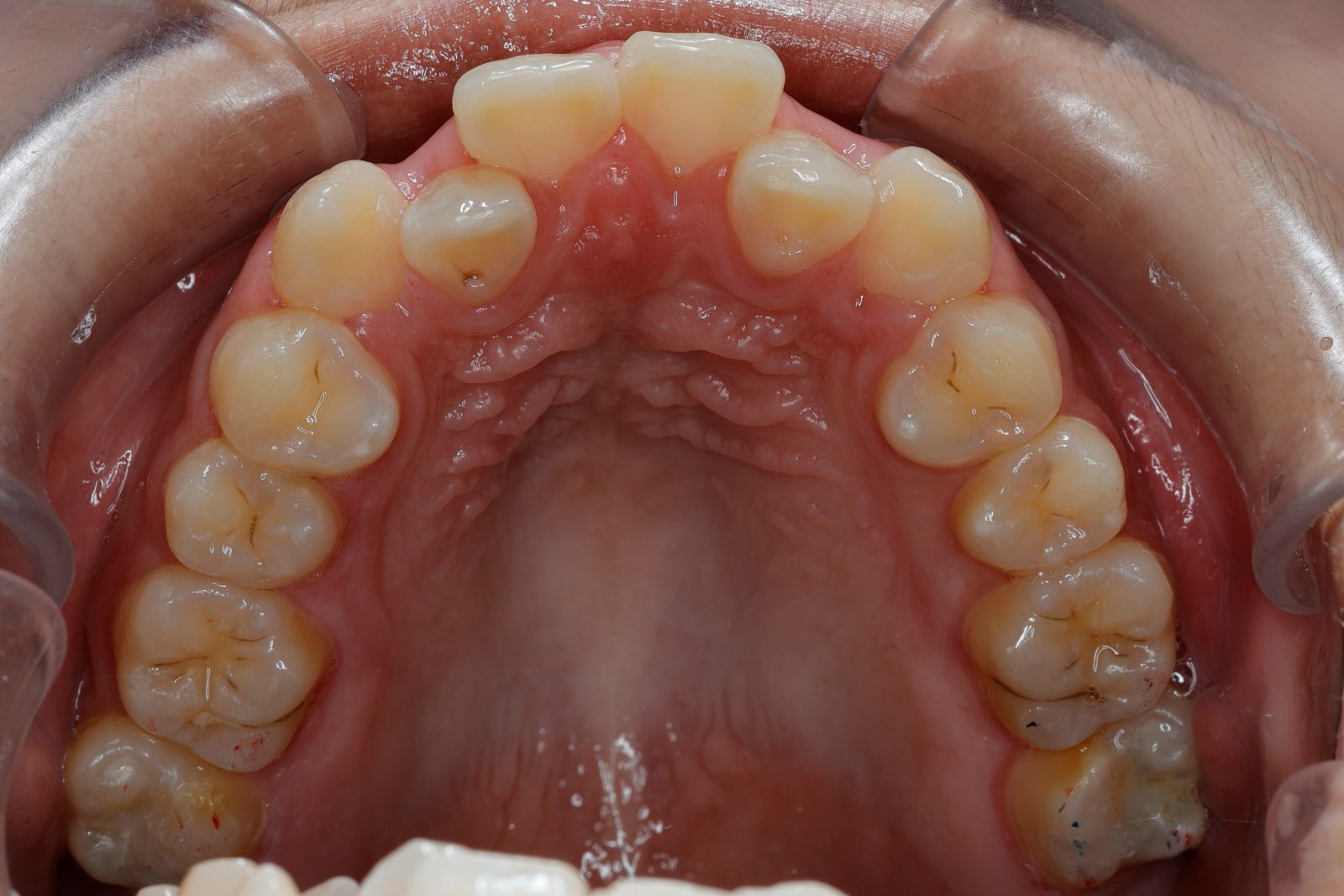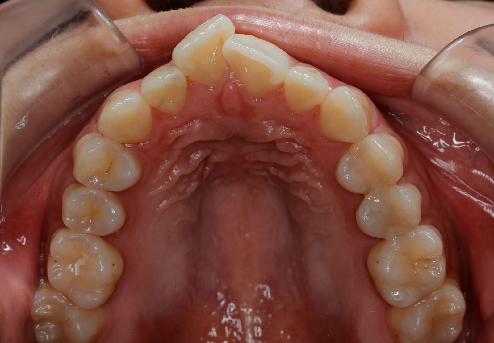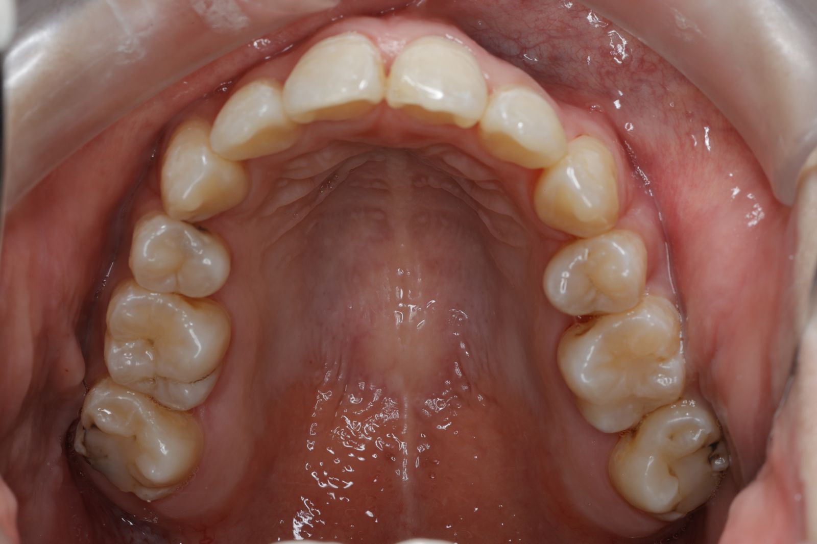 牙弓狹窄,呈現”v”型,導致牙齒凌亂,間接造成咬合不正