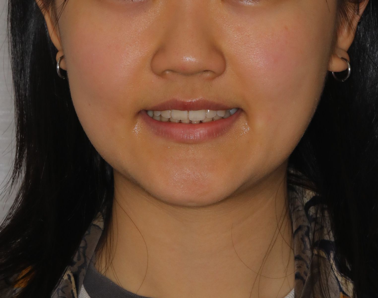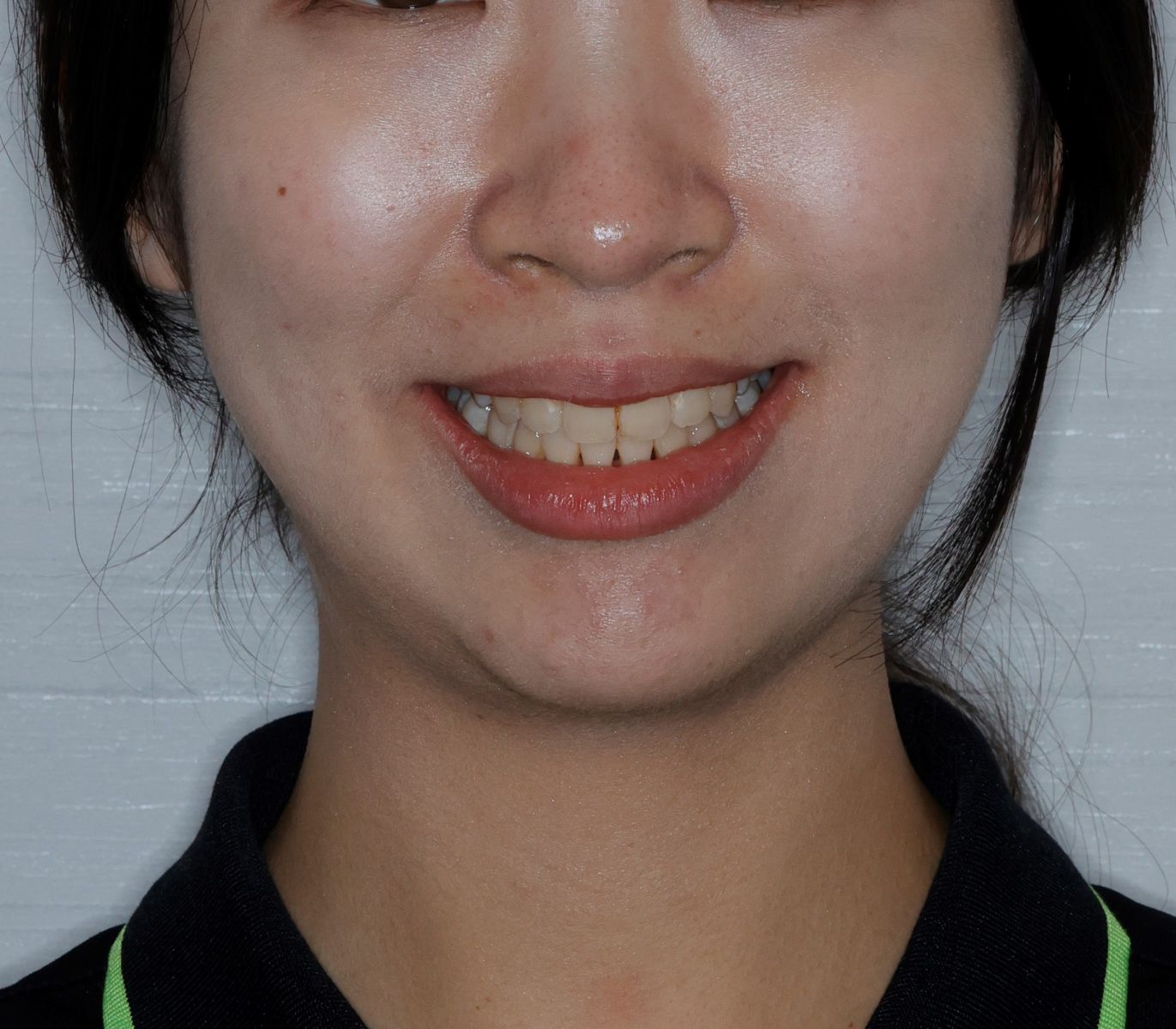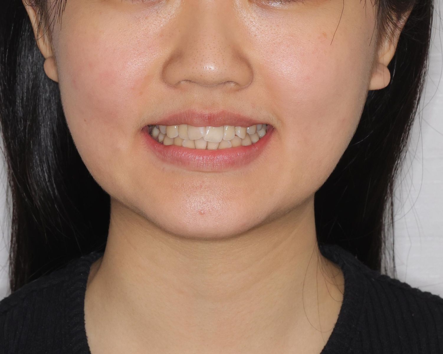 因為調整過程需要空間,避免排整齊後變得更暴,矯正過程中院長林政憲醫師,拔了4顆小臼齒,經過約2年的時間關縫調整,改善咬合關係後也讓下巴線條更明顯立體好看!