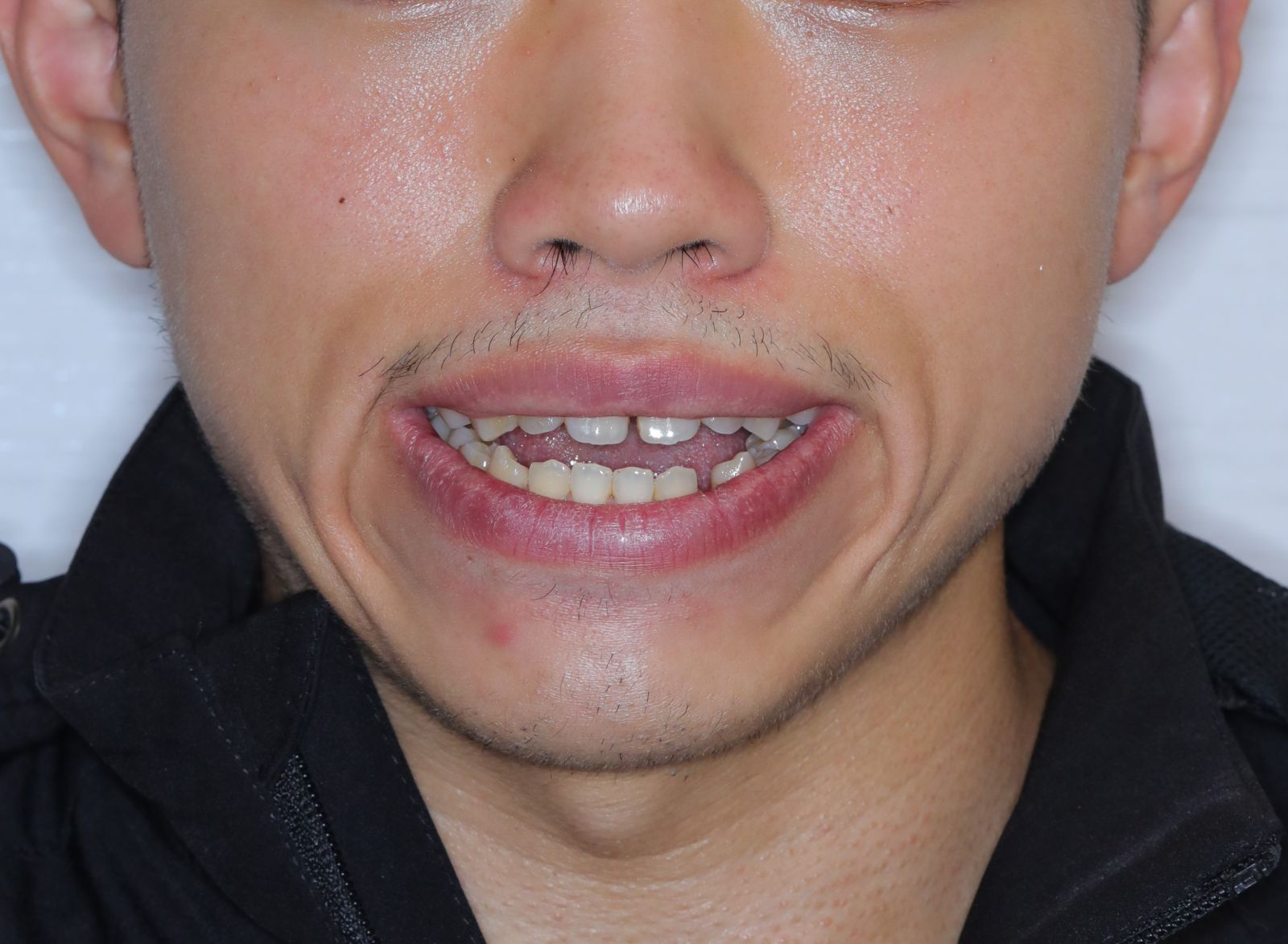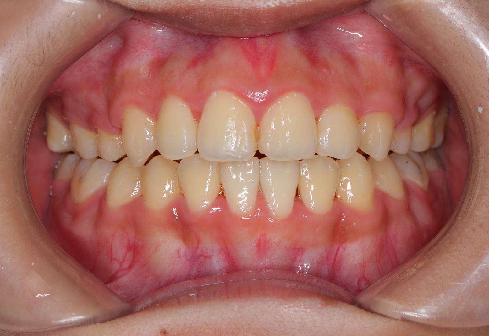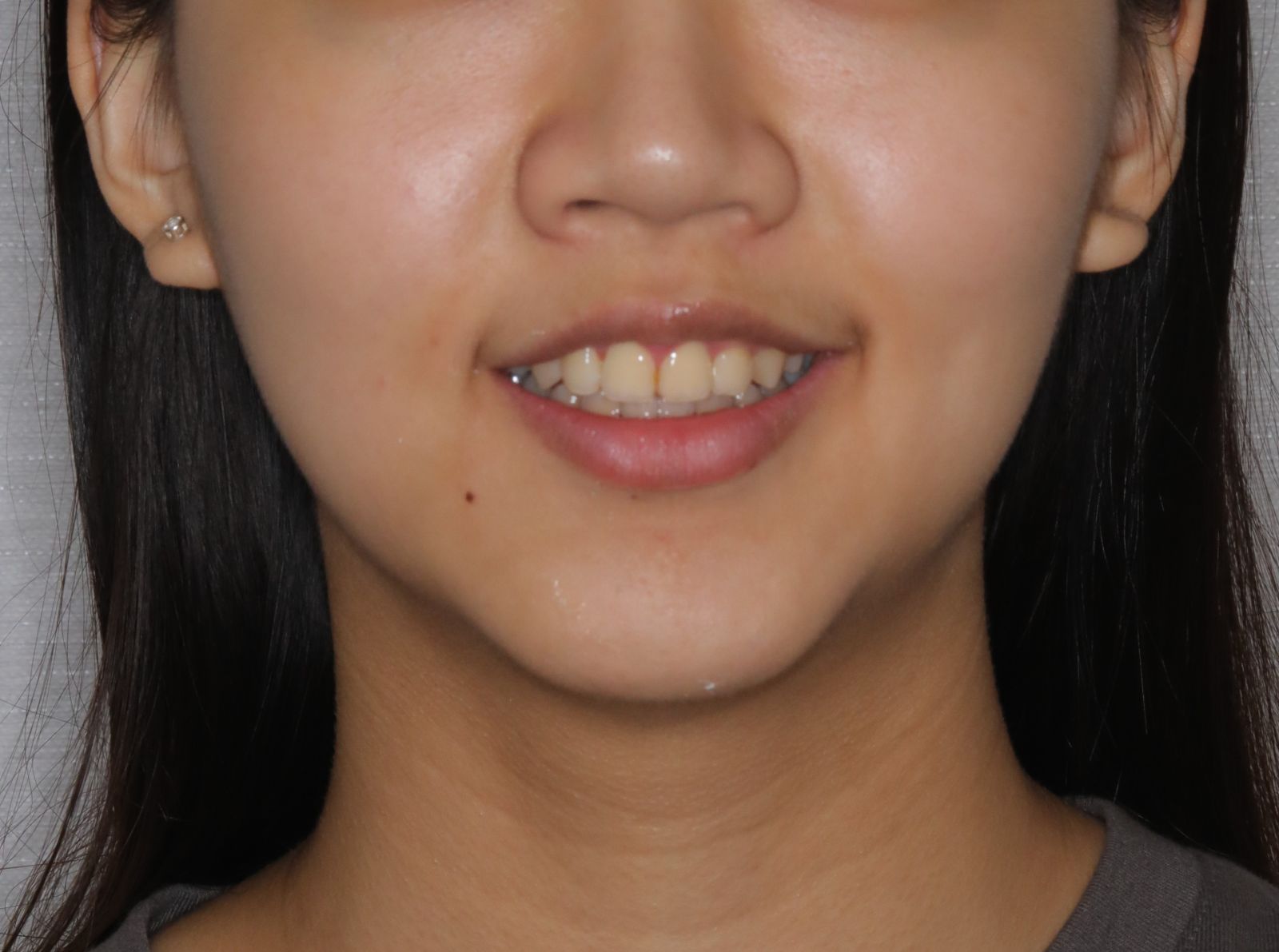 因為調整過程需要空間,避免排整齊後變得更暴,矯正過程中院長林政憲醫師,拔了4顆小臼齒,經過約2年的時間關縫調整,改善咬合關係後也讓下巴線條更明顯立體好看!