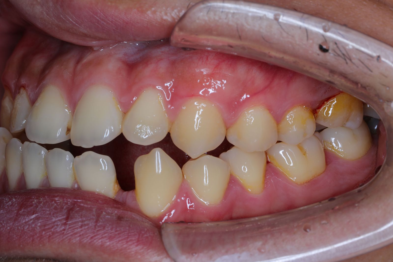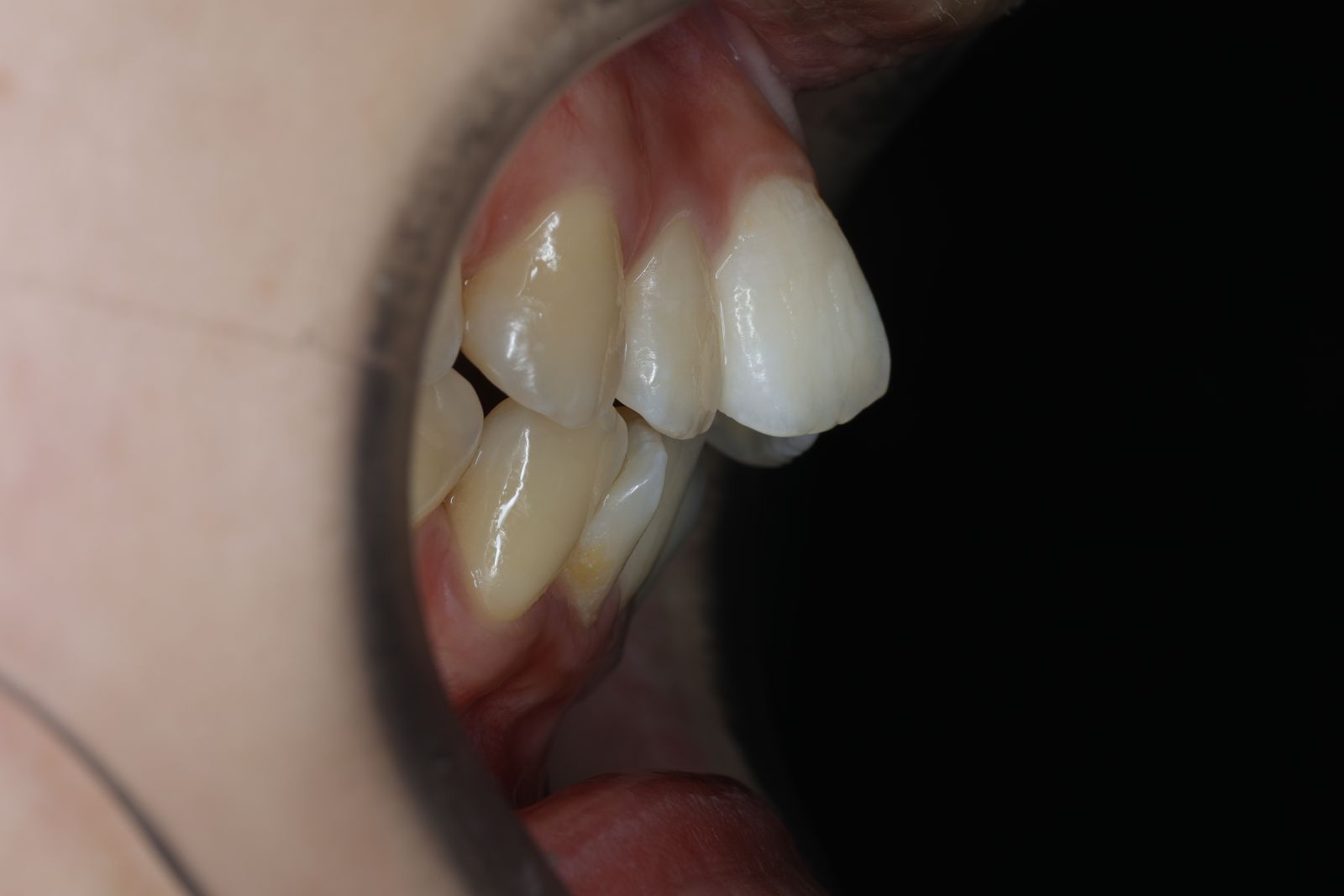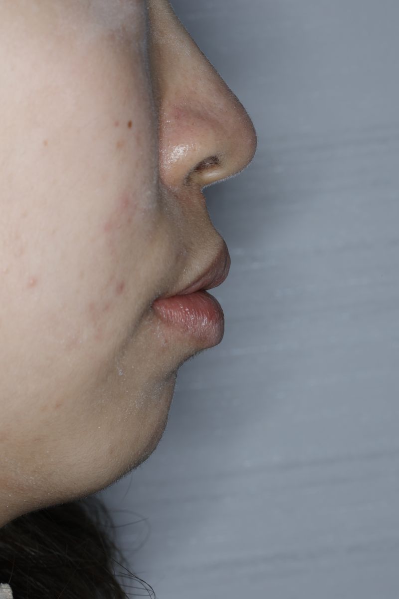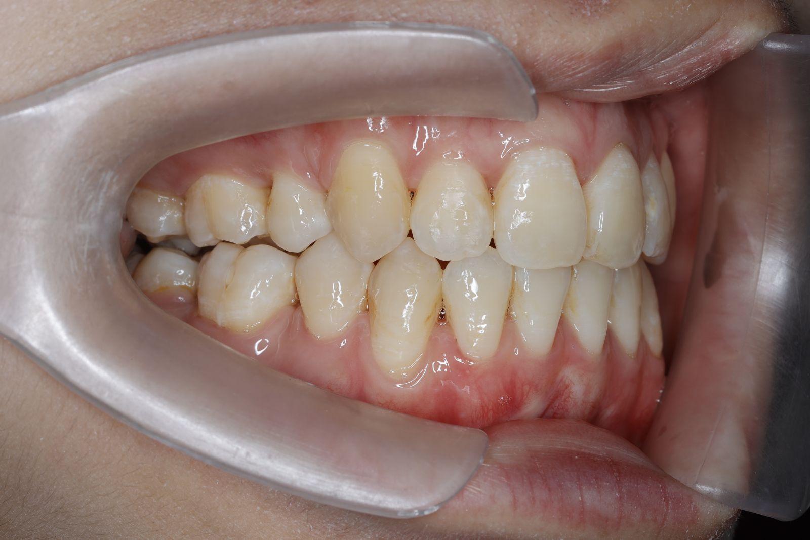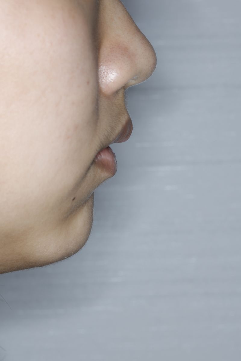 牙弓狹窄也讓前牙比較暴,側臉形明顯嘴唇較凸下巴線條不明顯
