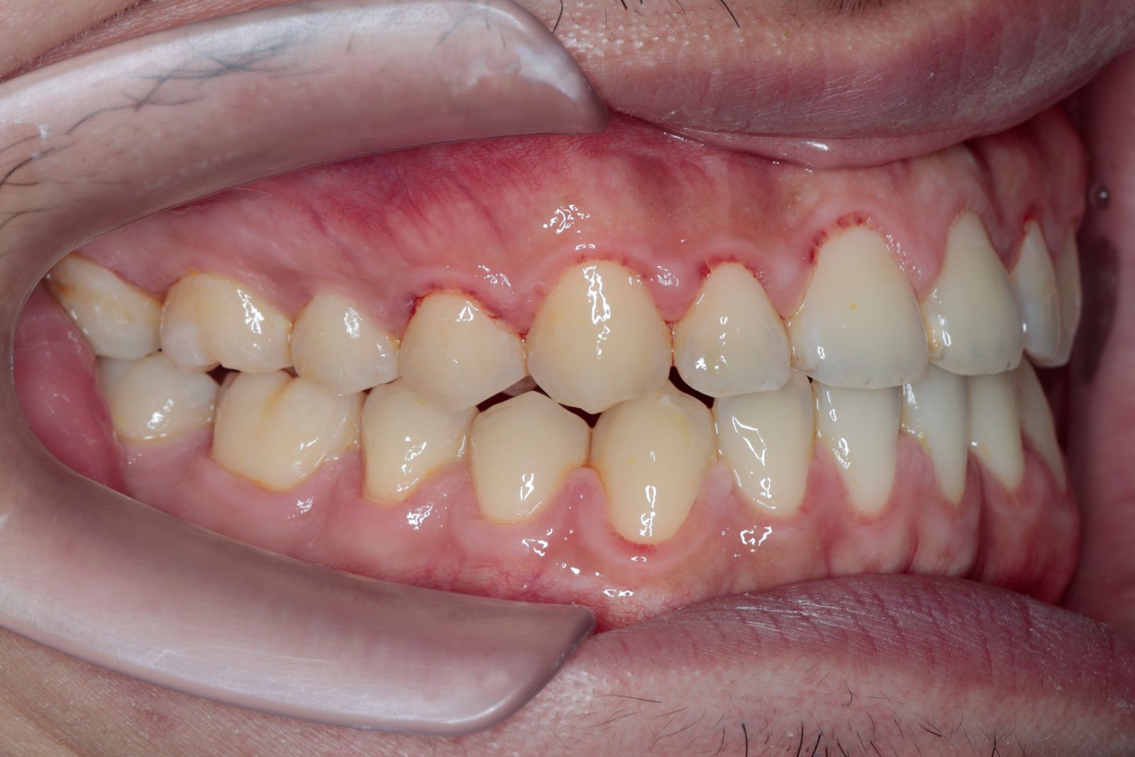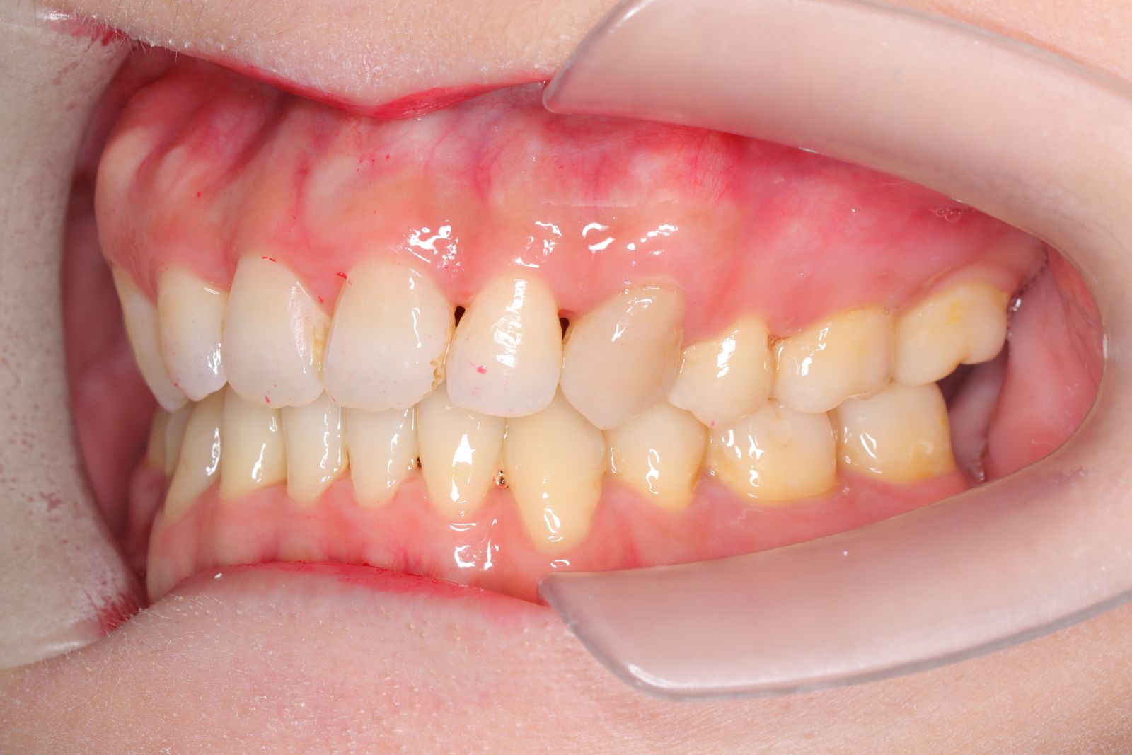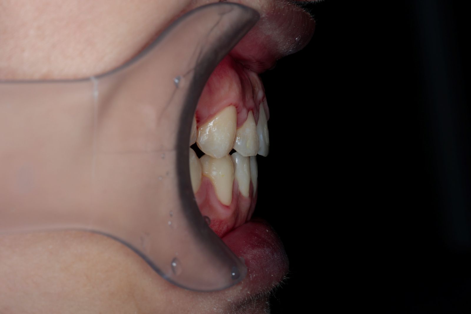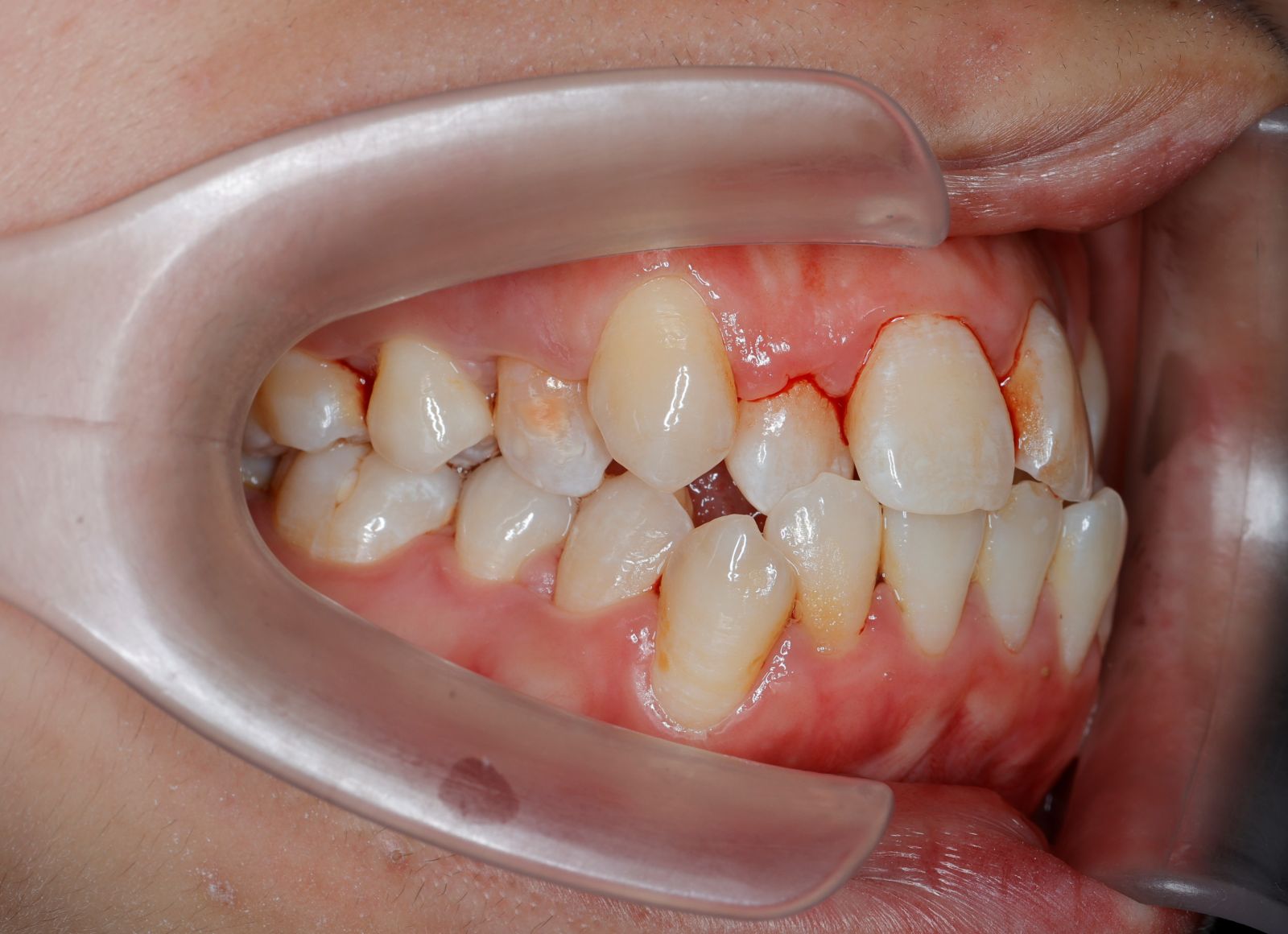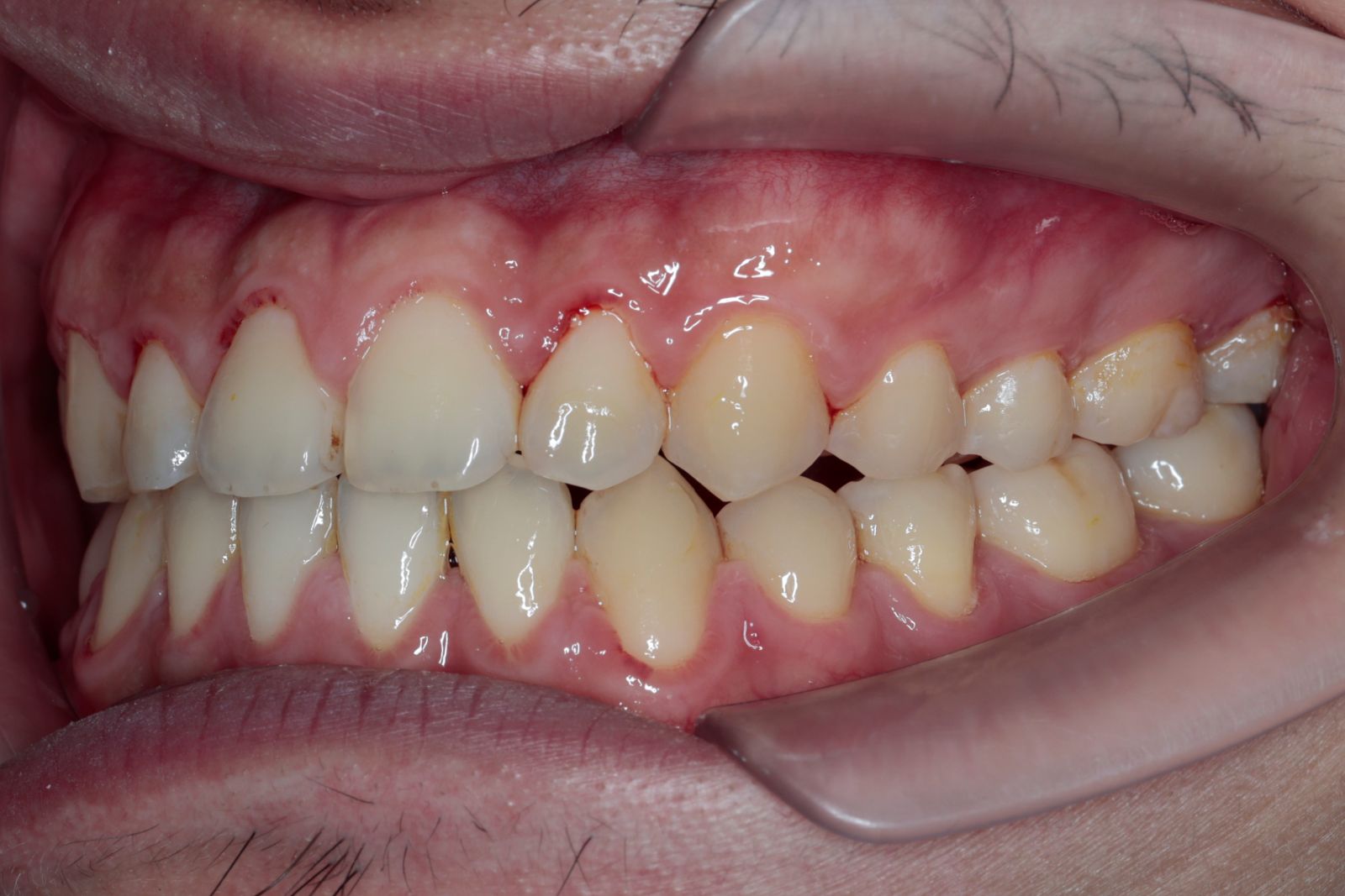 牙弓狹窄也讓前牙比較暴,側臉形明顯嘴唇較凸下巴線條不明顯