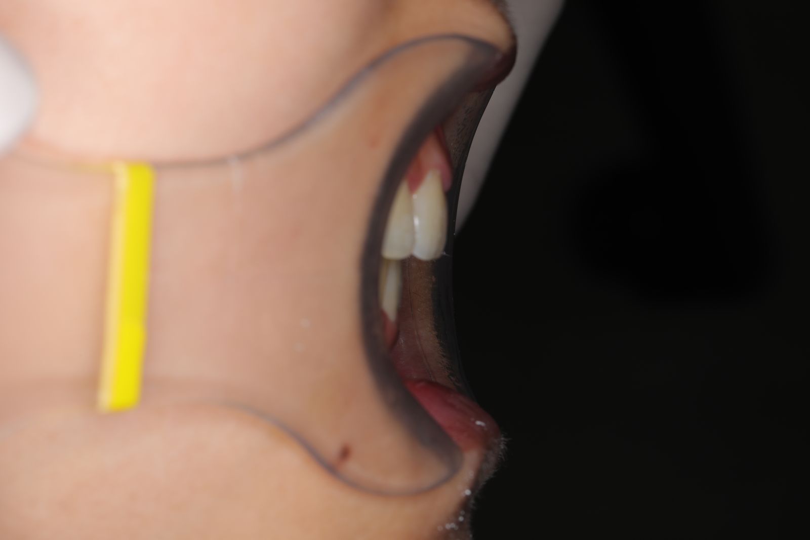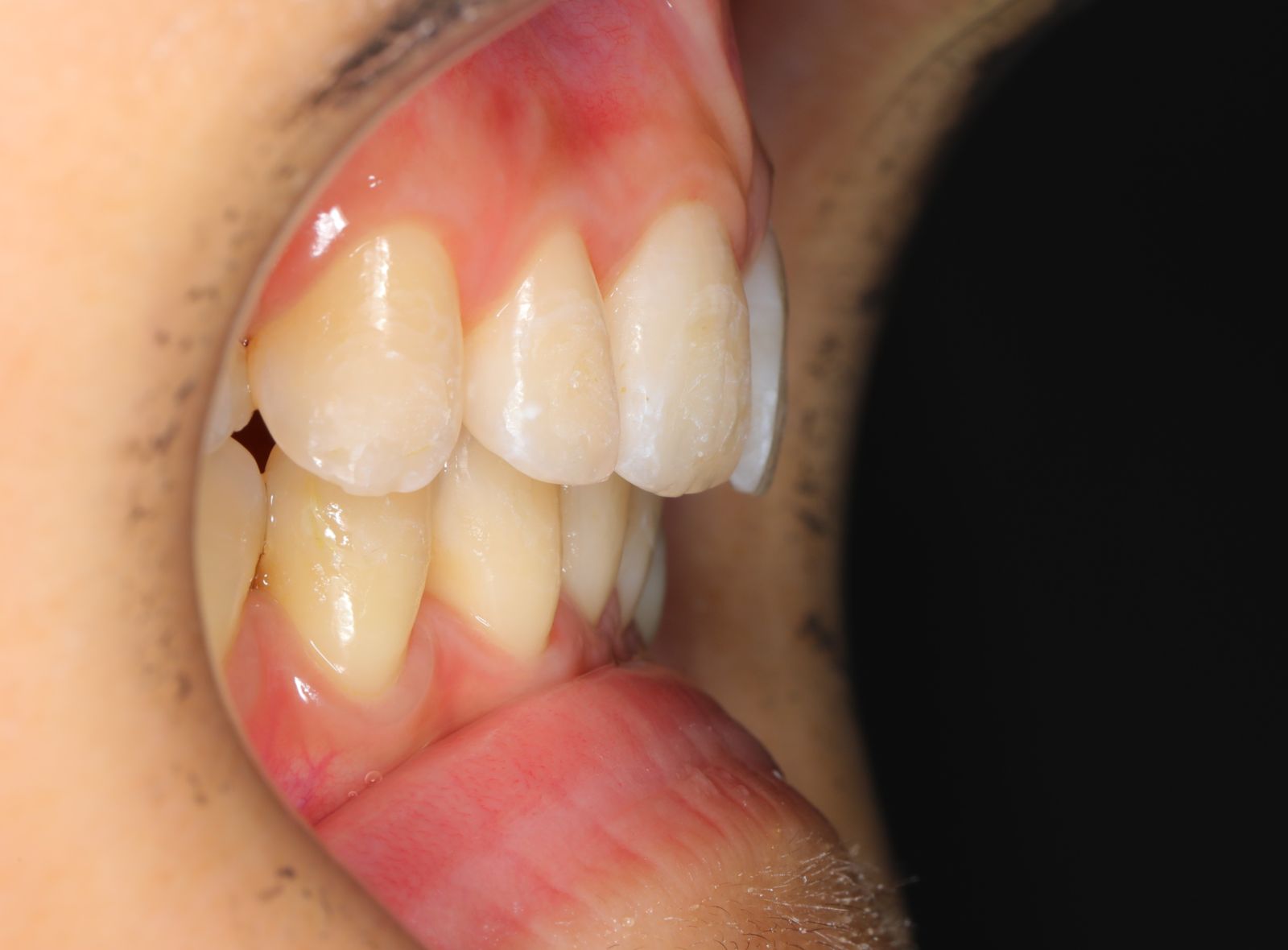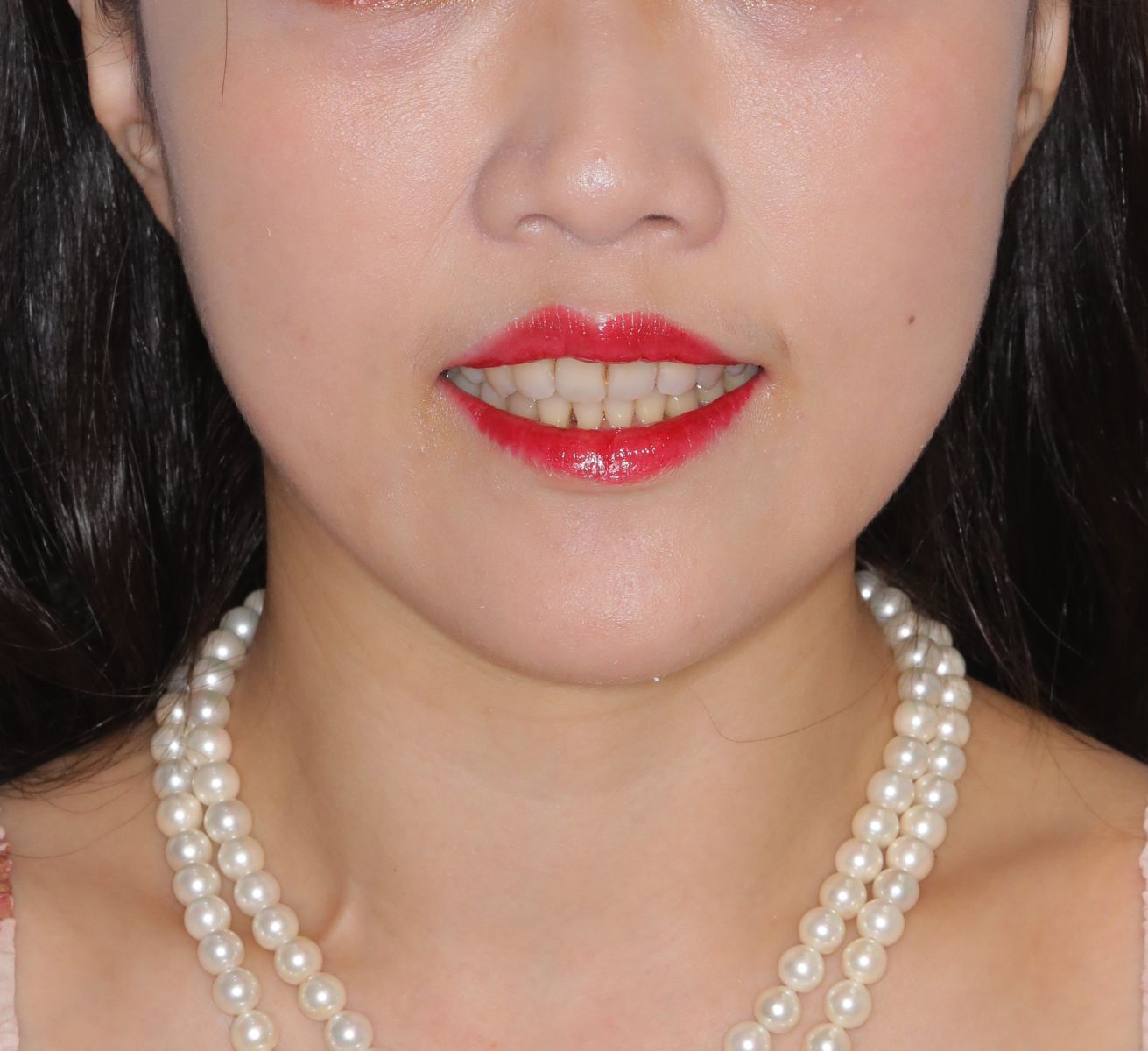 門牙往後退也讓側臉明顯唇型往後縮,建立屬於自己的微笑曲線。