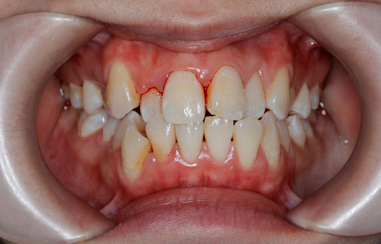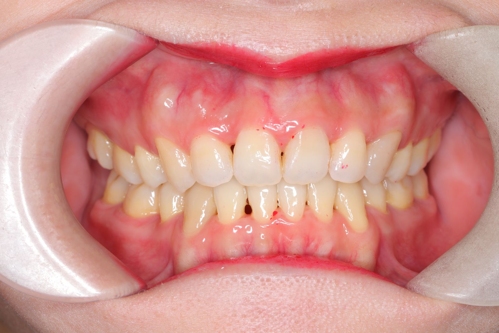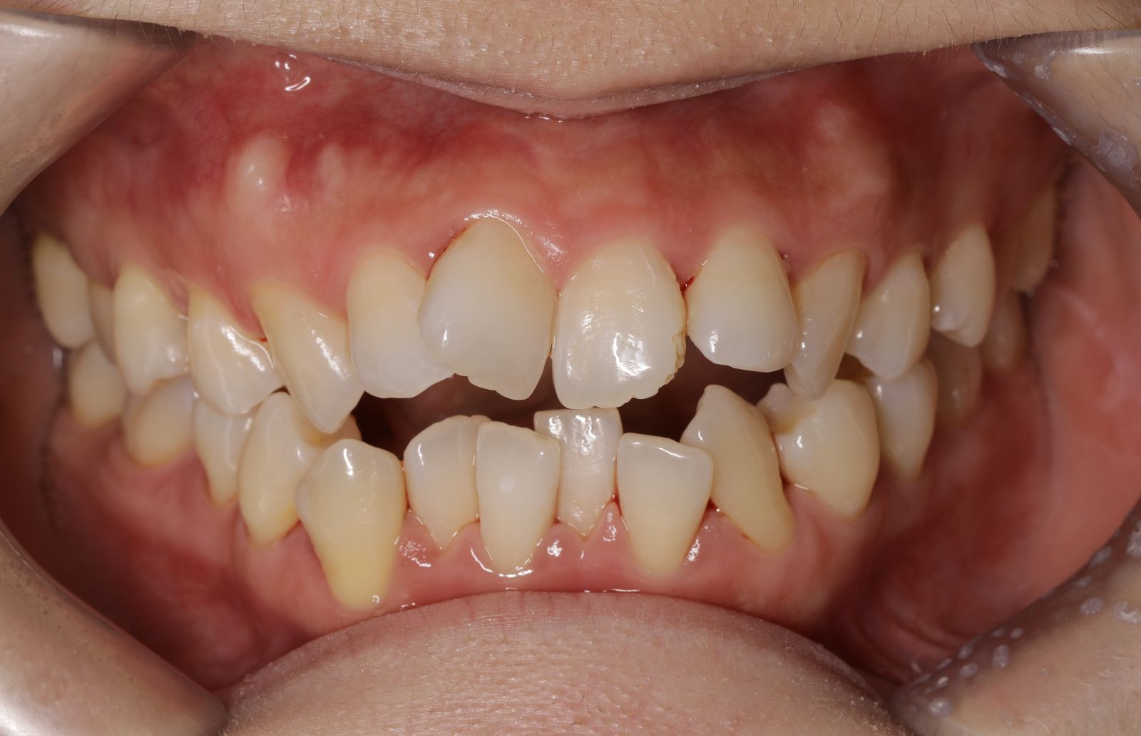 患者想矯正的主要訴求是牙齒亂、牙弓太窄造成暴牙影響笑容,門牙開咬也影響唇形。也是普遍亞洲人口腔咬合常見的問題。
