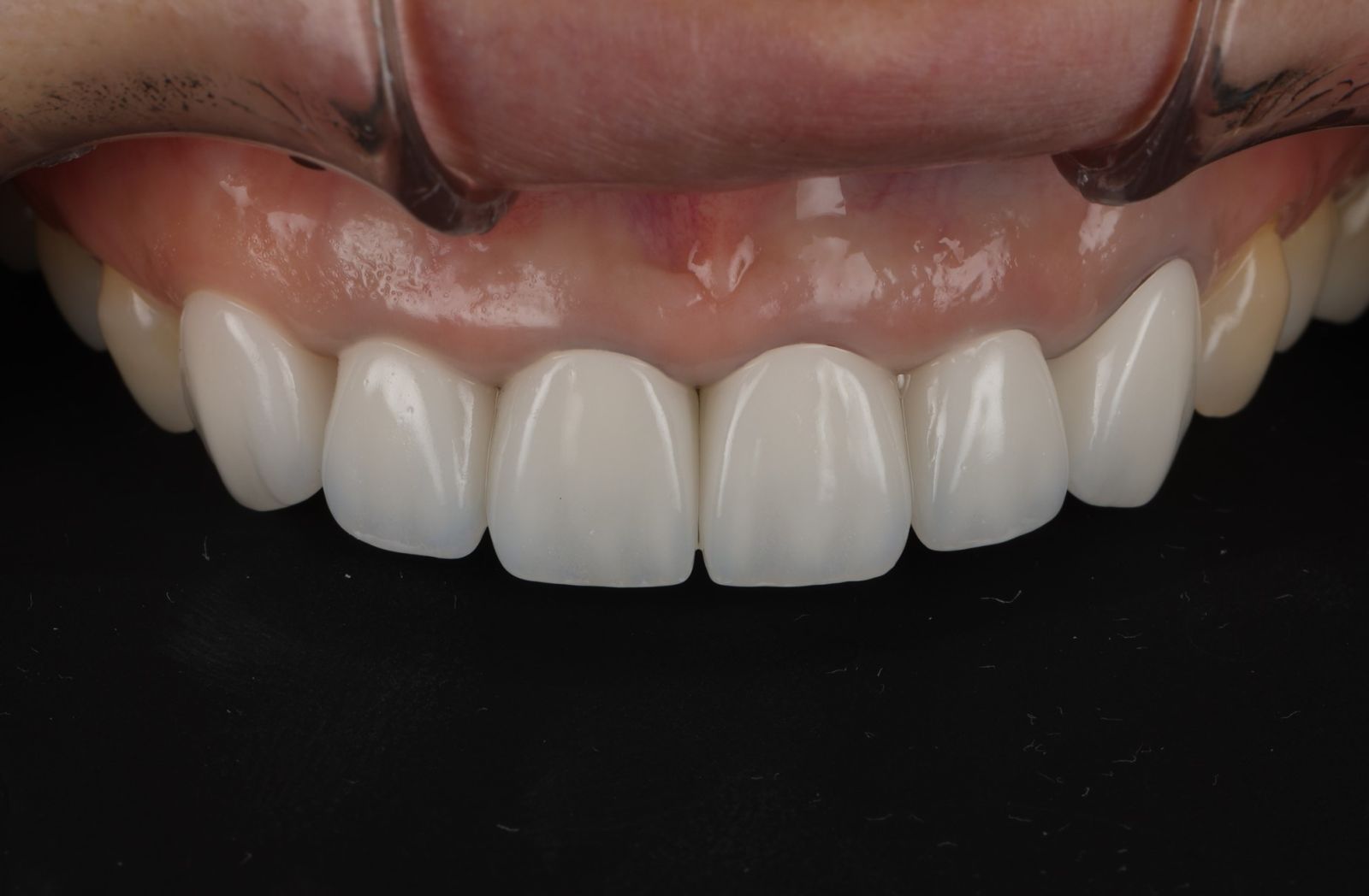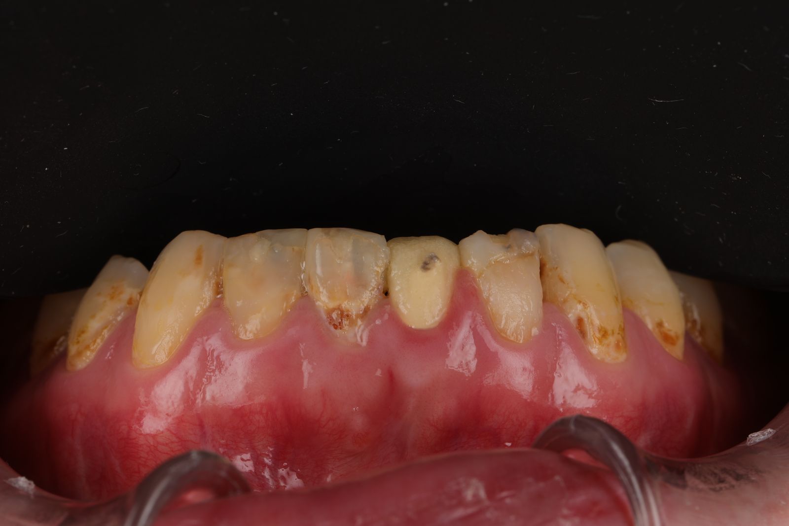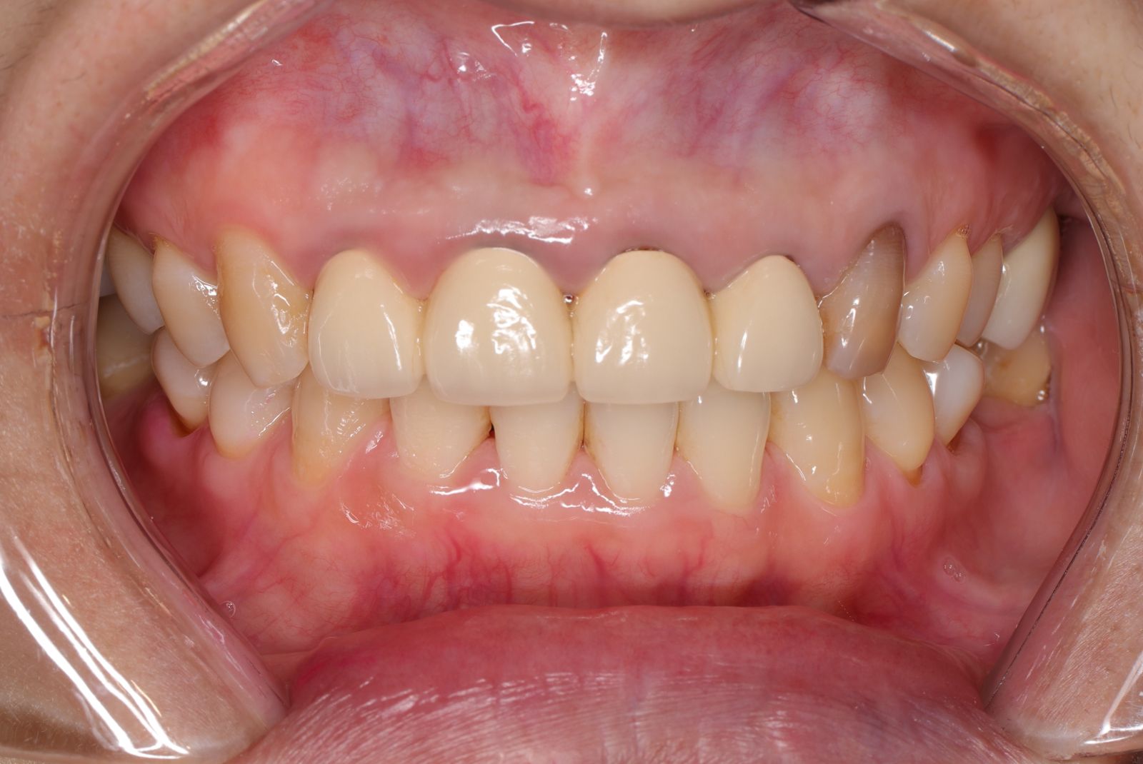 - 患者因為以前矯正疏於清潔,很多的蛀牙以及抽過神經的牙齒斷裂缺損,脆弱的牙齒影響健康及美觀。把牙齒磨小的過程會挖除蛀牙,保留健康的牙齒,用陶瓷纖維牙釘維持強度,過程會先用臨時牙套與醫師討論型態,最後依照自己喜歡的顏色及外型設計專屬於自己的前牙美學全瓷冠假牙!
